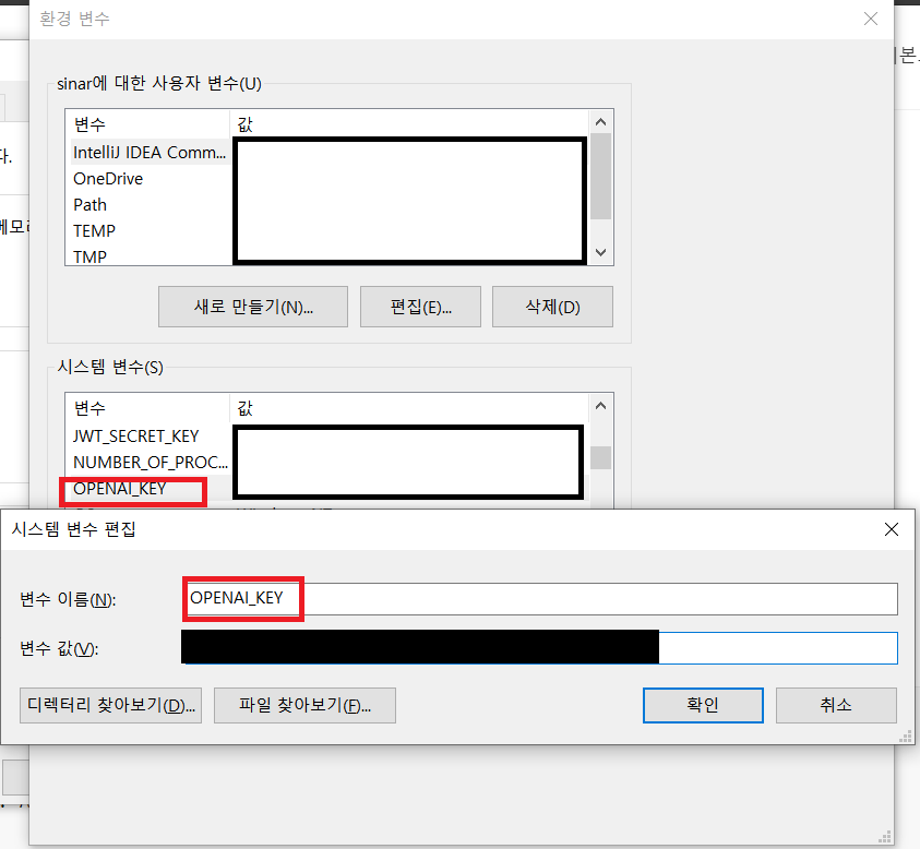 - 발급받은 OpenAI Key를 환경변수에 저장해서 사용하기