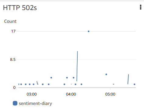 - AWS의 LoadBalancing에서 확인 → 502 에러가 다수 발생한 것 확이 가능